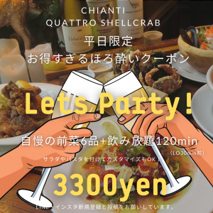 平日限定!飲み放題2時間/前菜6品『ほろ酔いプラン』¥3300