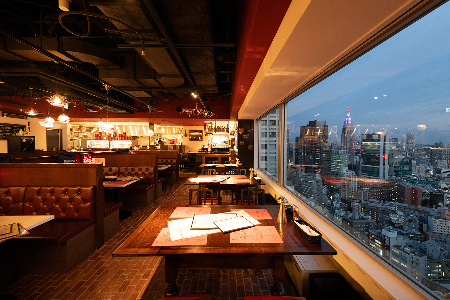 夕暮れ時はトワイライト、夜は東京ビル群の夜景を楽しむことができます。